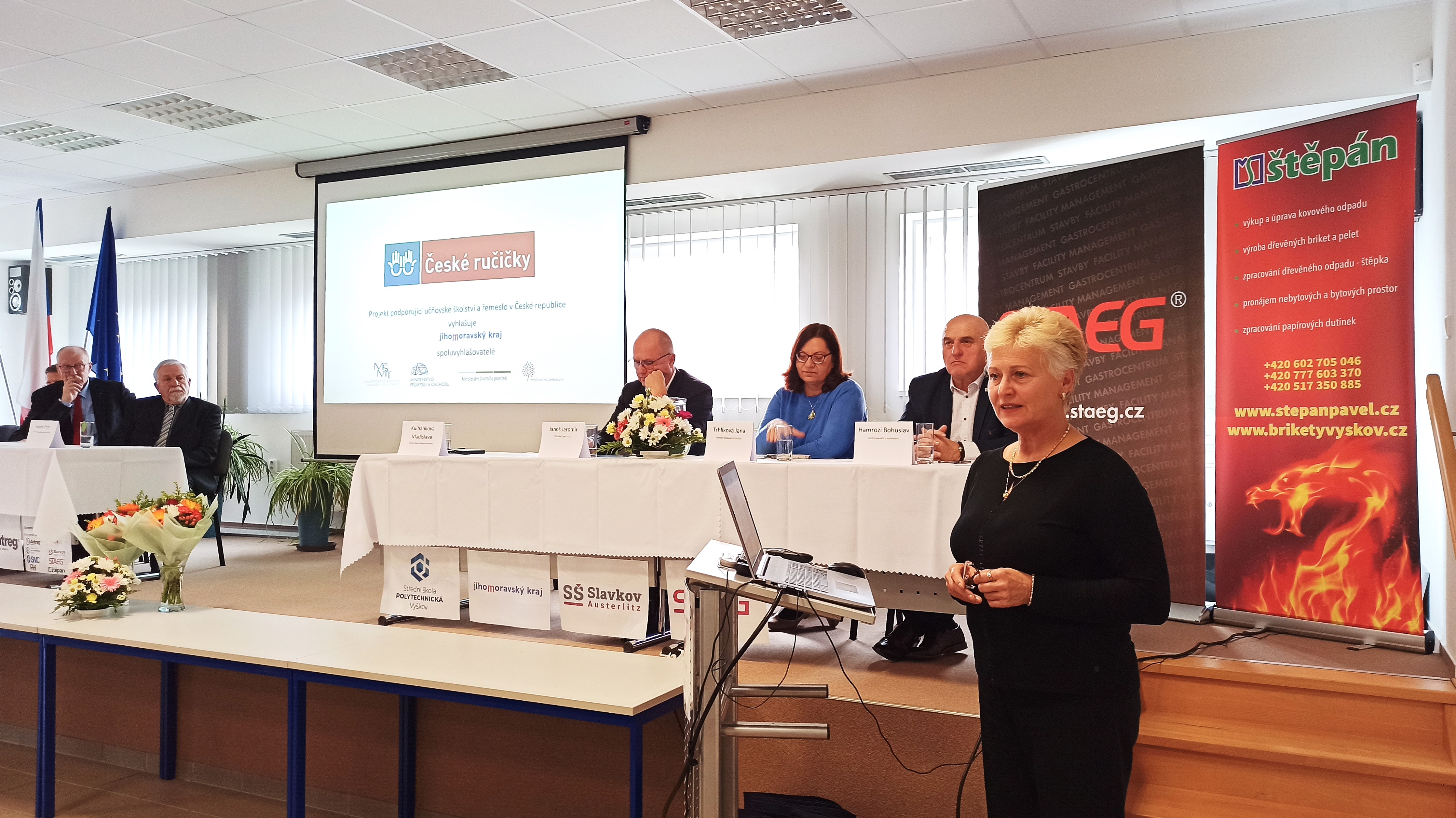 Vladislava Kulhánková, ředitelka SŠ Slavkov u Brna, představila středoškolské dovednostní soutěže – jejich přínos i výzvy. Zdůraznila, že soutěž České ručičky je mistrovstvím České republiky v dovednostech žáků, a poděkovala přítomnému profesoru Kuzdasovi za jeho zásadní přínos k jejímu vzniku.